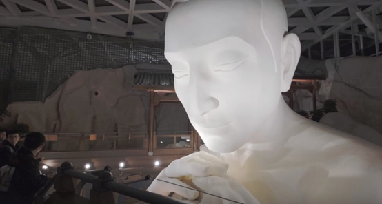 IP突出和体验感:问蟾亭是项目的最高点,也是最佳实现景观点,其中的一座跨楼层雕塑成为这有山的名片,同时体验感方面,雕塑手上有一只蟾蜍,游客可以用纪念币去击中三足金蟾嘴中的铃铛,进行获得一次祈福;从商业角度而言,问蟾亭全年门票收入能达到五百万左右